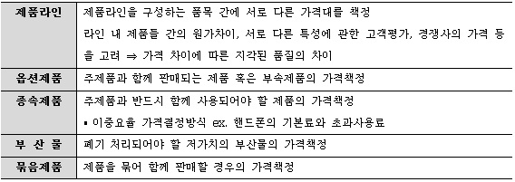 종속제품: 기본서비스는 낮게 + 변동비에서 이익 Ex. 면도기와 대체용 면도칼