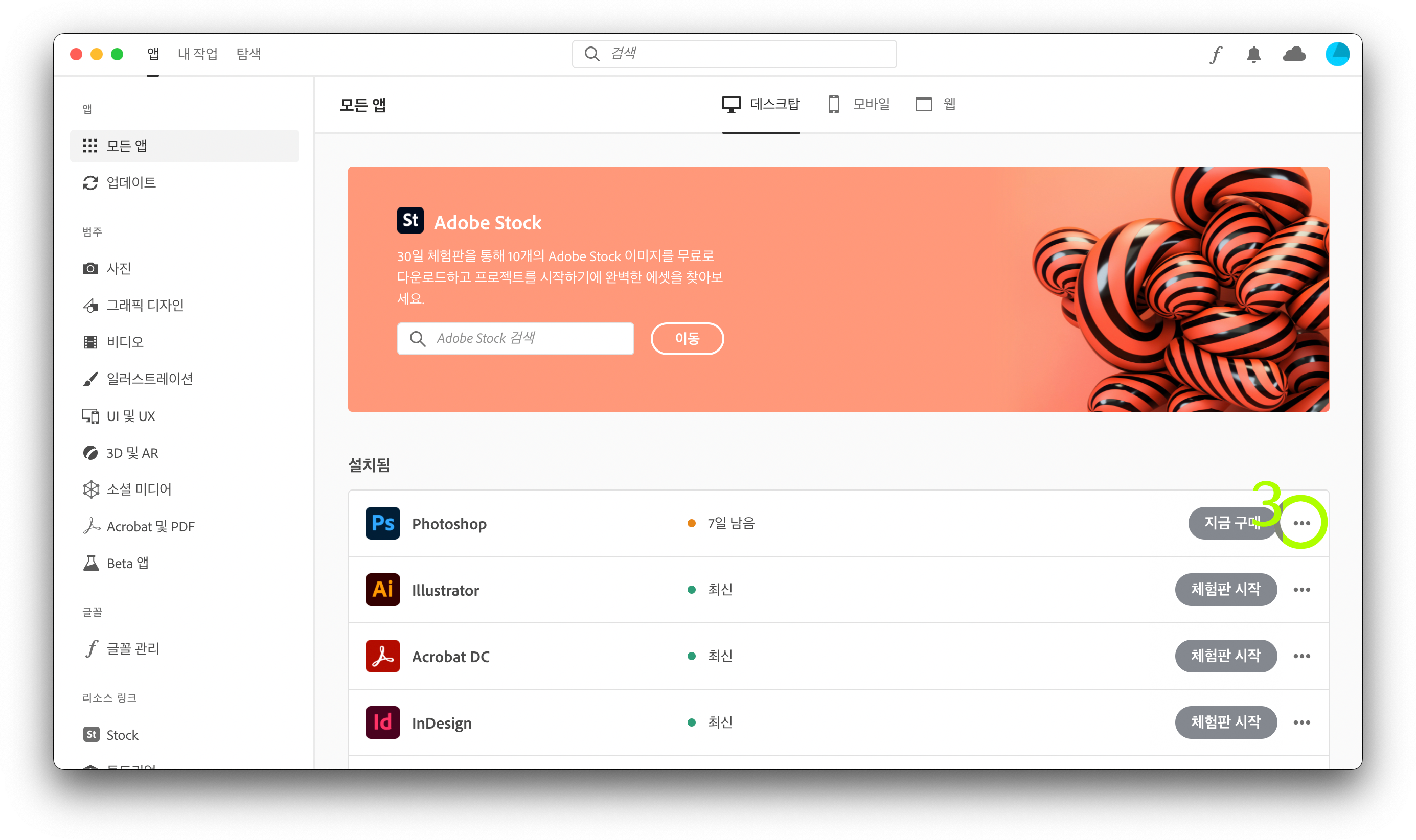 2. Adobe Creative Cloud를 클릭합니다.